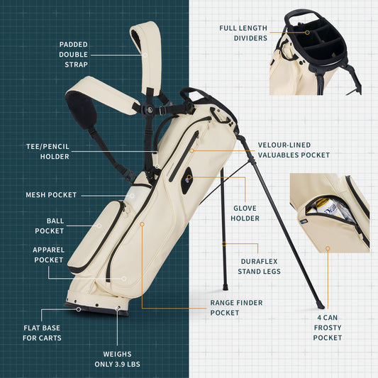 I decided to switch to the Ranger from the Ryder for my stand bag (I also have the Big Rig for a cart bag). I loved the Ryder but the Ranger exceeded my expectations. Light to carry with outstanding storage in all the pockets. I love the bag material and really like the magnetic closure on the cool pocket. I really like the full length dividers. I highly recommend!