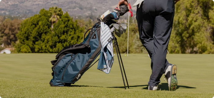 It's best to use the Big Rig on the back of a golf cart or on a push cart. As it's a heavier bag with a single carry strap, we recommend one of our lighter carry bags instead for walking rounds.