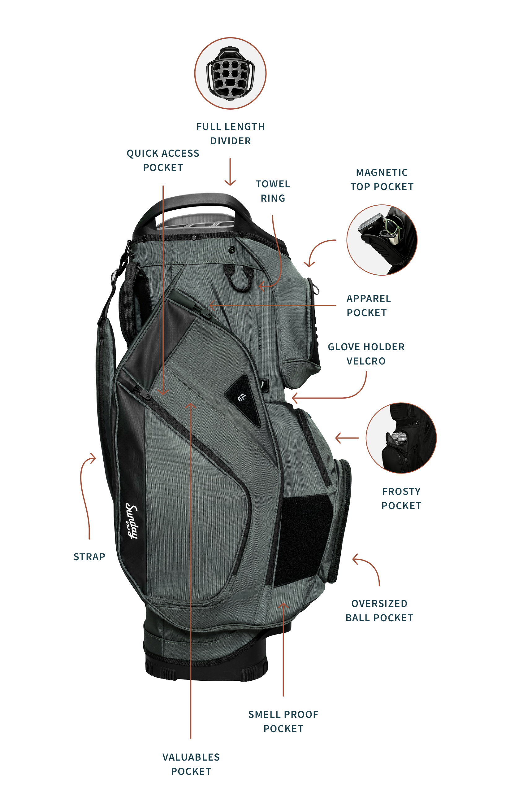 - • Custom 14-Way Top with Anti-Catch Putter Slot