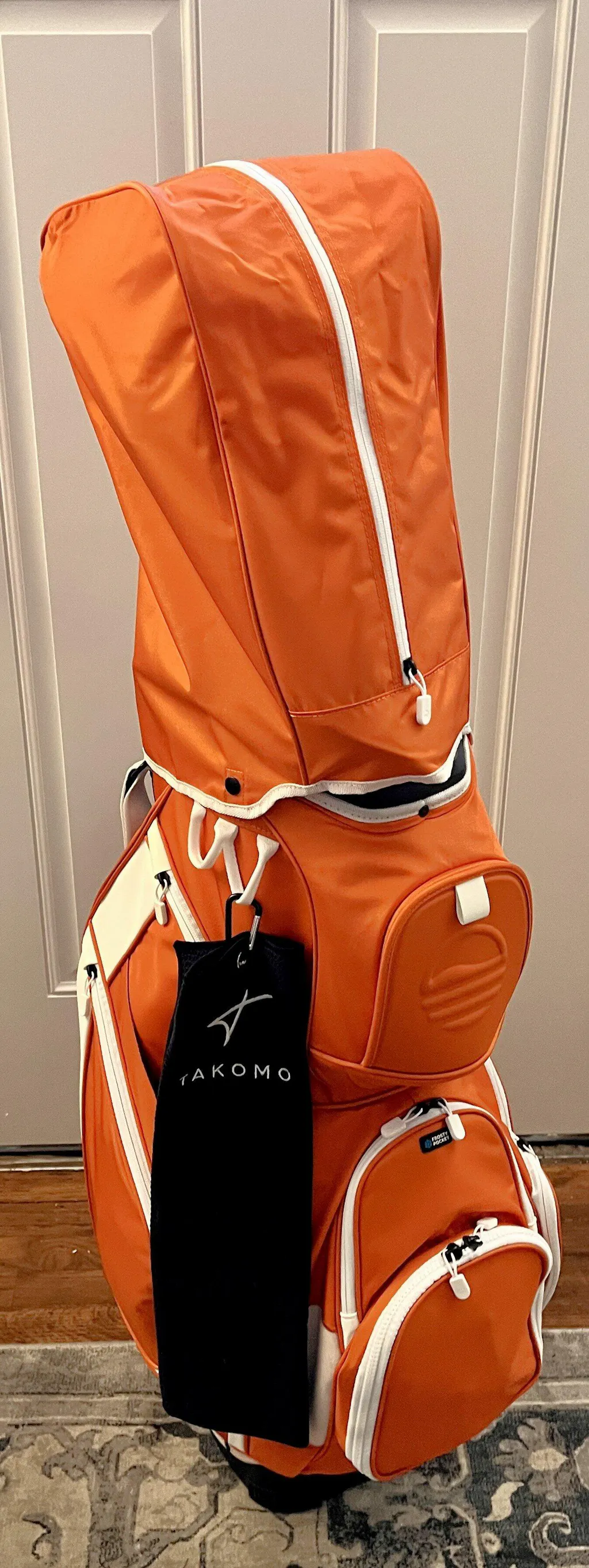 Use a freezer Ice pack in the frosty pocket not ice cubes. Use one of the two utility loops on the left side of the bag to hang your towel and use the designed golf towel ring holder to hook your hydro flask or similar drink canteen to it for easy access. Do not use for Jumbo XL grips, only jumbo or smaller.